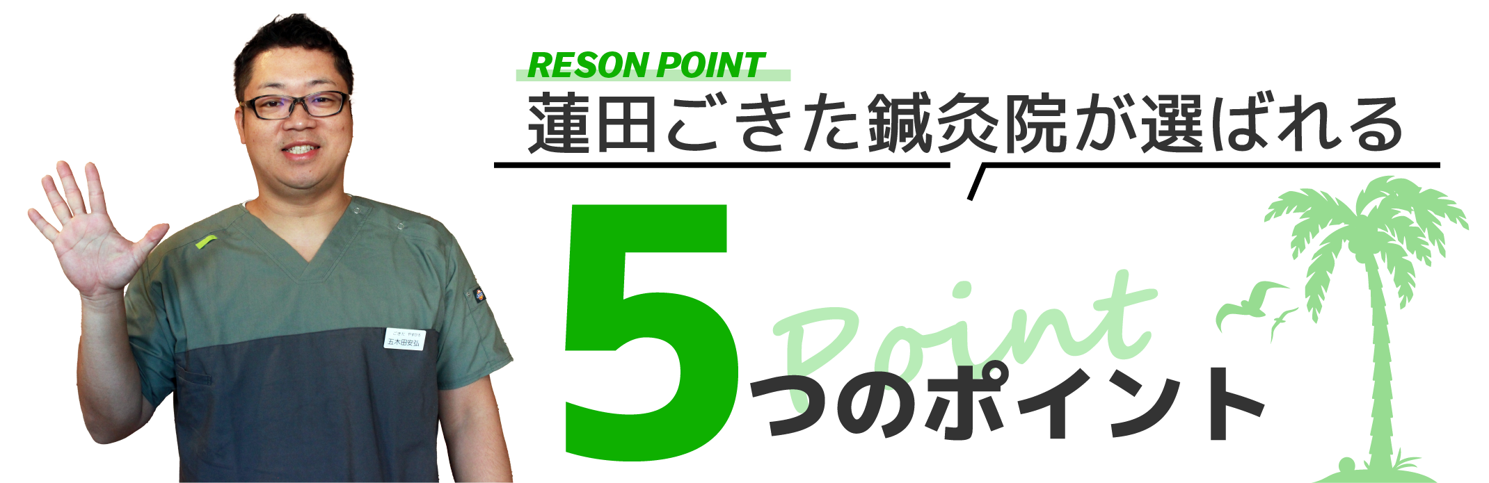 蓮田ごきた鍼灸院院長の五木田安弘です。お子様からご年配の方まで施術できるのが鍼灸の魅力です。そんな鍼灸の魅力をたくさんの方に知っていただきたく、開院いたしました。